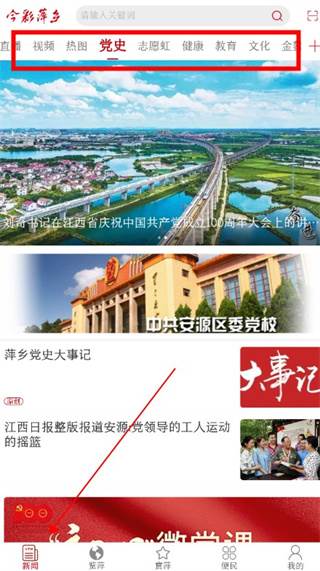 3、点击“新闻”,用户可以阅读萍乡的最新新闻资讯,还能阅读党史、教育、文化等模块;