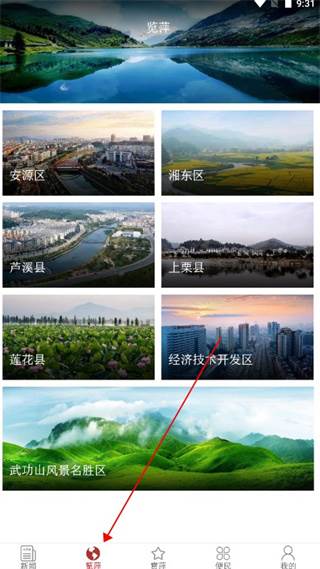 4、点击“览萍”,用户可以看到萍乡市所有区、县、风景区的新闻;