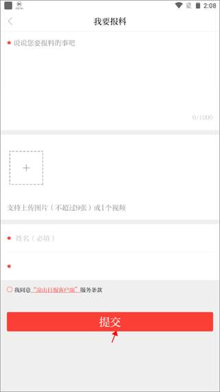 2、填写要报料的内容,上传相关的图片进行描述,最后点击提交即可。