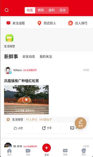 3、中间的互动,可以查看最新的各种肇庆市民分享的各种肇庆生活日常;
