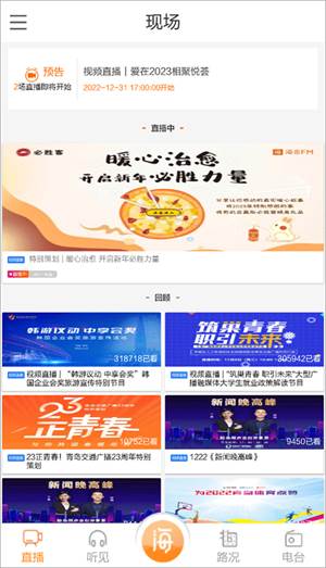 1、点击进入【现场】页面,可回顾往期节目。