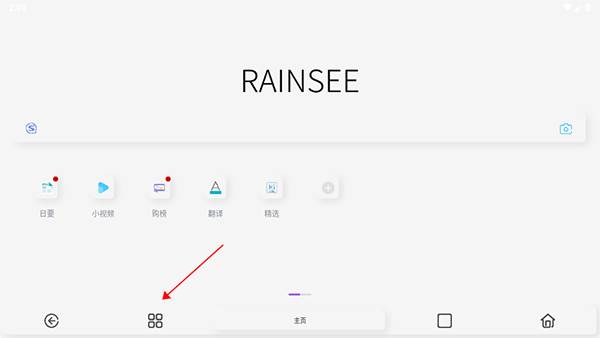 1、进入到rains浏览器软件后,点击下方的菜单按键;
