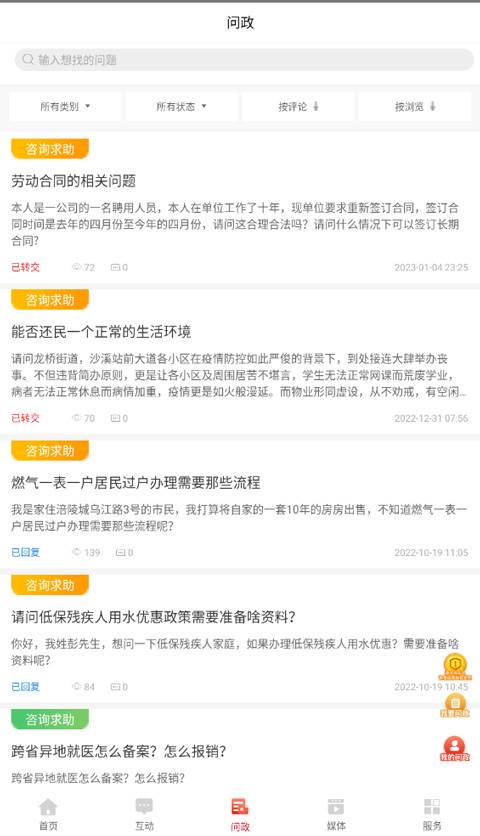 1、参与网络问政,本地的人可以在这里提出问题等待政府部门的回答。