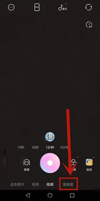 1、首先我们先下载好一甜相机,然后我们进入主界面,再点击右下方的【漫画脸】选项,接下来我们进入下一层界面。