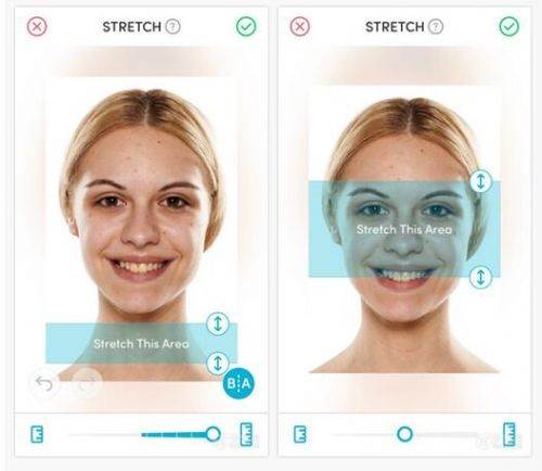 还记得之前可以秒变大长腿的应用Spring吗?AirBrush 中也有类似的功能。选择你需要拉伸或者压缩的区域,滑动下方的滑块即可伸缩自如。