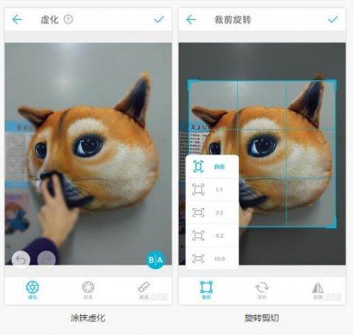 紧随面部修饰选项之后的两个选项分别是:背景虚化和裁剪。