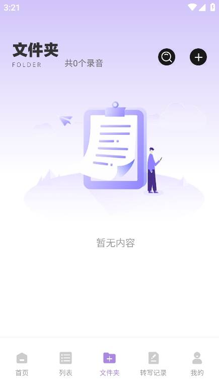 3、在文件夹与转写记录中可以查看自己的音频处理文件以及音频转写记录。