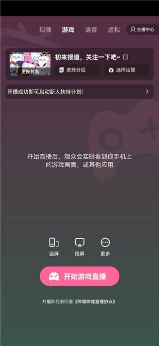 开播页与正常视频基础功能一致,但主要该模式适用于手机投屏开播,选择投屏后可使用PC直播姬进行开播。
