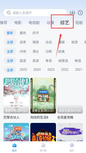 3、打开综艺版块可观看各类真人秀与娱乐节目,内容按播出平台与热度排序。支持查看往季合集与节目预告片。