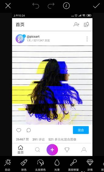 5、修正照片的细节,你能够改动你的肤色,头发的颜色,以至消弭脸上的粉刺,让你的皮肤看起来更润滑