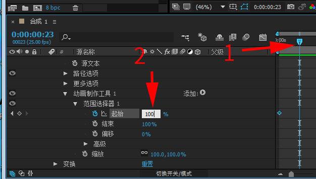 再把时间轴拖动一下,停留的位置就是运动结束的位置,然后起始点改100;