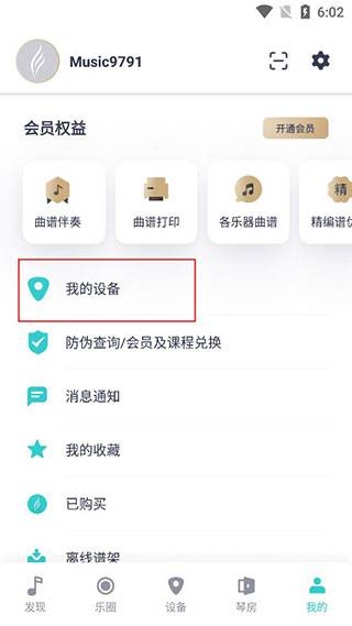 5、在这里,还可以看到我们收藏下载的乐谱以及我们自己的设备。