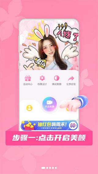 1、下载微美颜安装到手机上,下载后根据提示,开启所需权限后进入软件首页,点击开启美颜