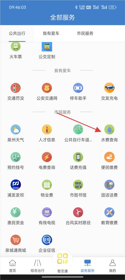 1、打开泉城通App,点击底部导航栏中的【政务服务】;