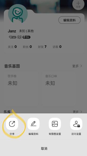 1、查看QQ音乐个人主页的查看访问设置,是否已开启喜欢,歌单的访问权限。