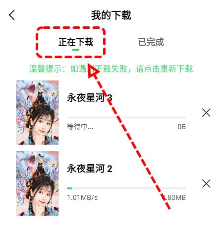 4.选择完成之后就可以查看下载的内容以及下载的情况
