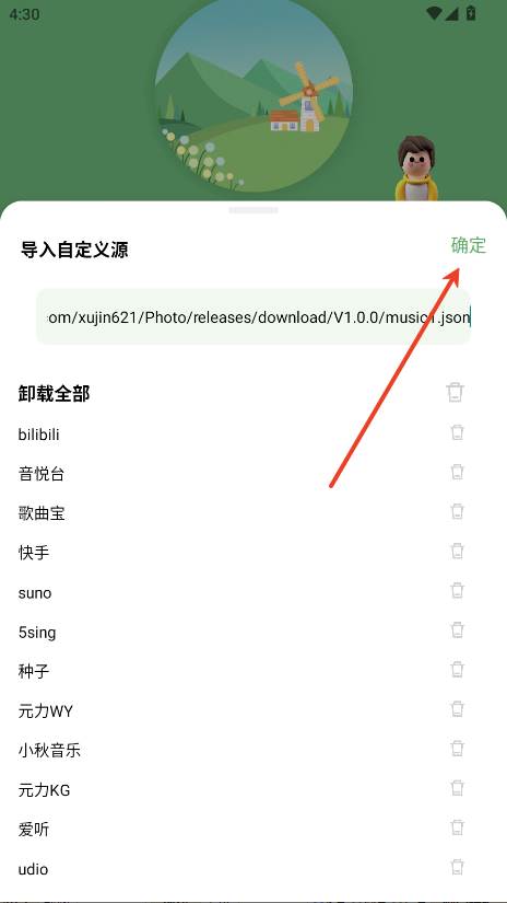输入本文提供的源地址,在框内粘贴点击确认即可