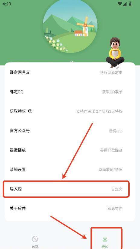 在我的界面点击导入源