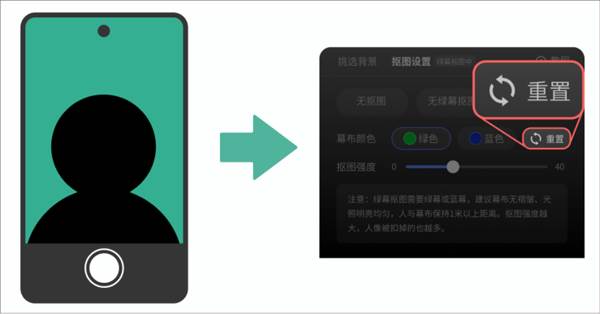 处理:请将绿幕/蓝幕调整到画面的1/3以上,并重新点击“重置”即可。