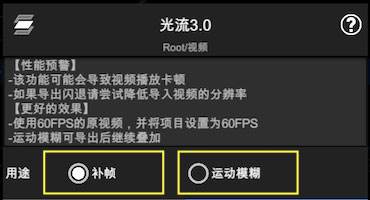 2、然后会看到如下的界面,这里可以选择用途为补帧或者运动模糊;
