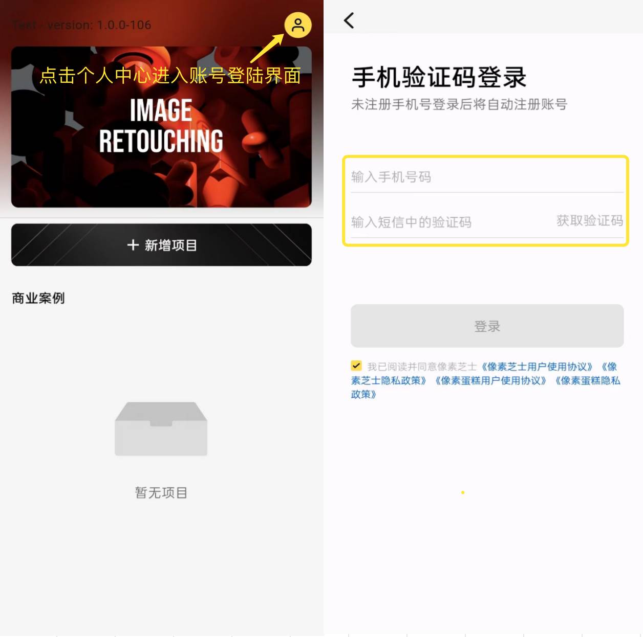 点击右上角「个人中心」图标进入账号登陆界面,通过手机验证码登录进入您的账号开启极速发布之旅。
