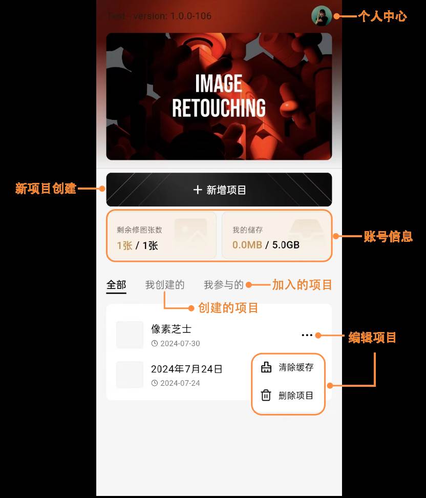在这里您可以创建新的项目,并对项目进行管理以及查看当前账户信息。