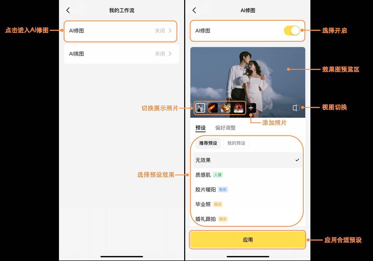 人像:仅使用人像美化模块功能的预设。