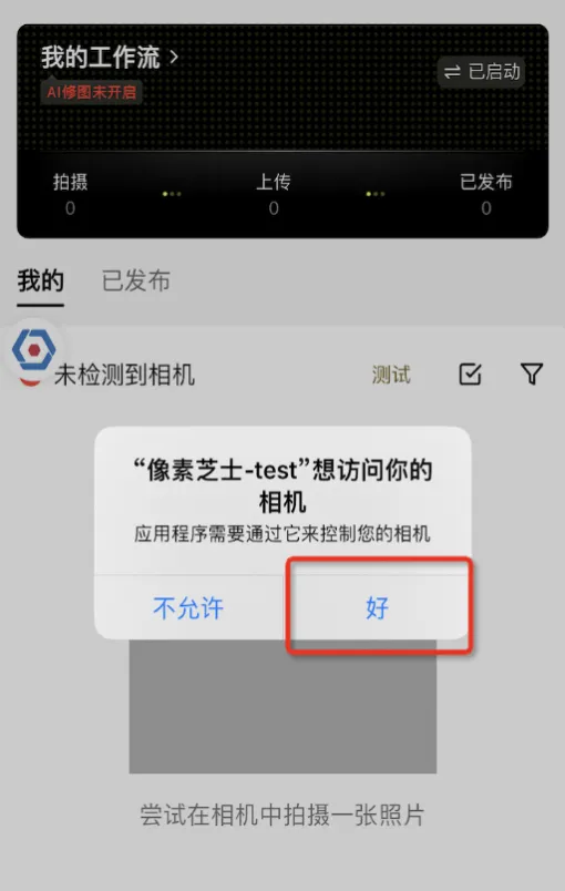 提示像素芝士想访问你的相机,点击「好」进行连接。