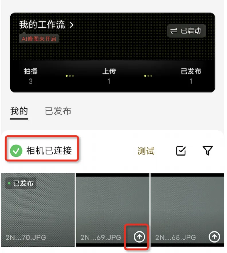 Ps:检测到当前已开启AI挑图,建议将上传方式改为边拍边传,则AI挑图通过的照片将自动上传