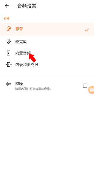 3、接着,在音源项目下方选择“内置音频”即可让XRecorder仅录制内部声音
