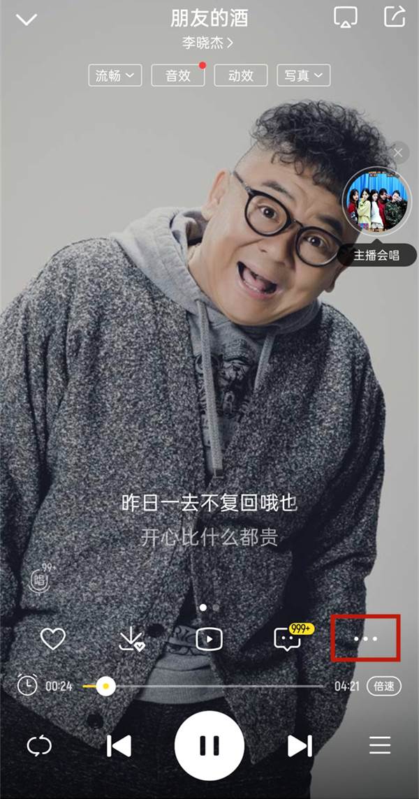 播放界面看起来还是相当美观的,此界面也设置了不少功能在里面。可以切换写真改成其他封面如动效、AIGC、3D、复古、明星、动感歌词等封面