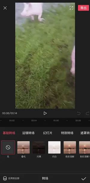 4.使用下方的所有功能之后,达到自己想要的效果之后,点击右上角的【导出】可以将剪辑好的视频保存到相册中;