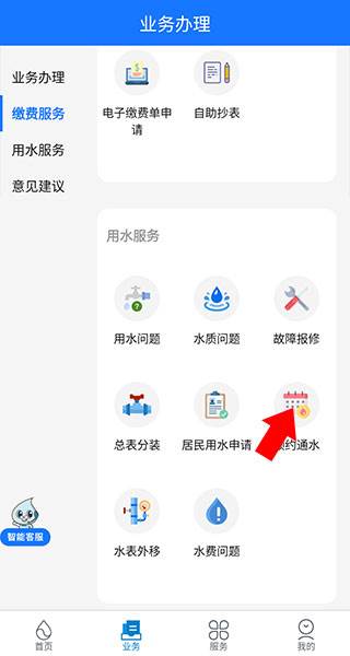 5、之后点击导航栏中的【业务】-【预约通水】即可申请通水了