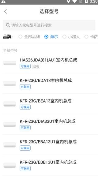 4、接下来找到你的空调的类型,选择点击进去。