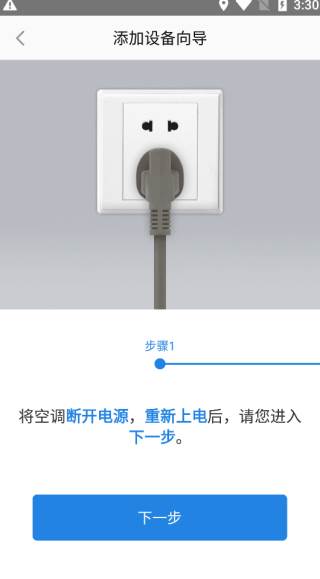 6、接下来将空调断开电源,重新上电后,进入下一步。