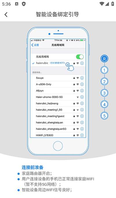(2)用户连接设备的手机已正常连接家庭WIFI(暂不支持5G网络)