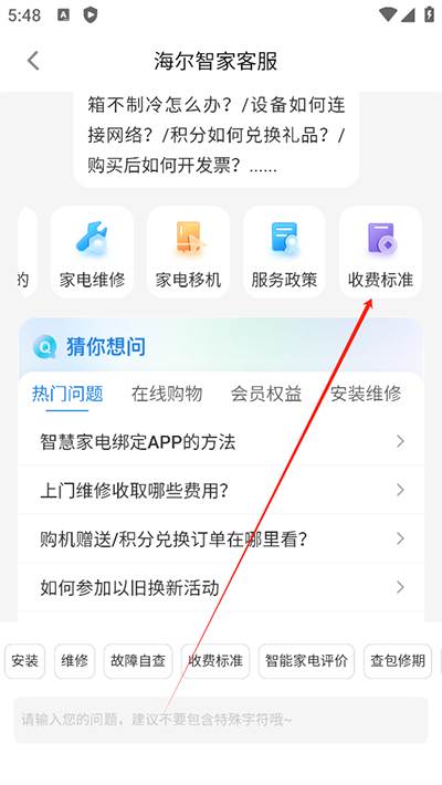 2、进入客服聊天页面后,点击“收费标准”