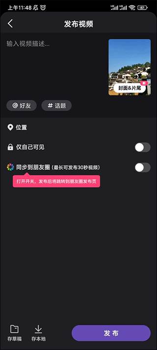 3、最后添加一个视频描述的文案点击发布就好了。