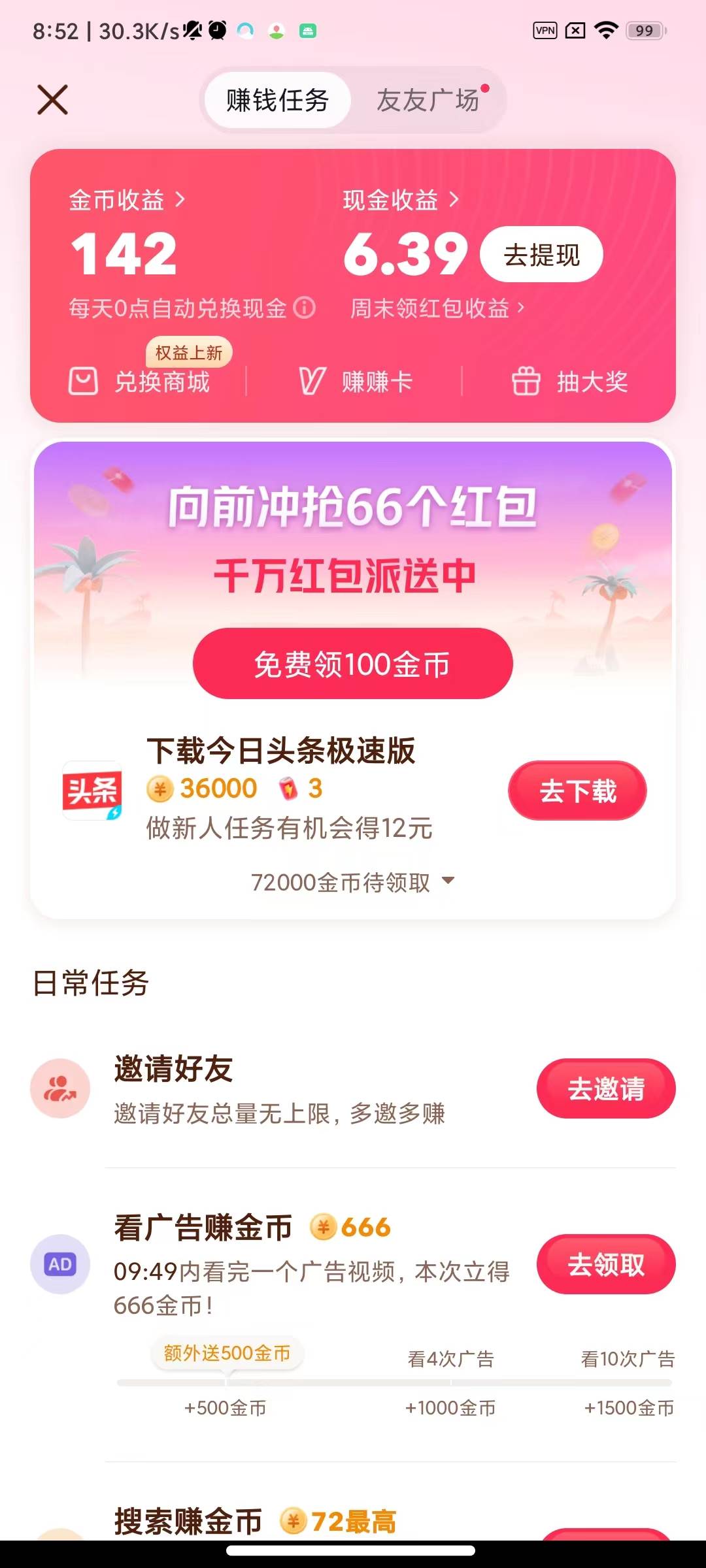 好友每天看视频获得的金币,你可以获得双倍,累计可达26元;