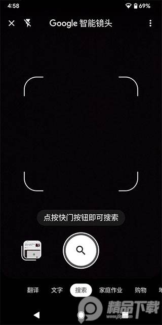 2、之后在打开的谷歌智能摄像头中拍下想要搜索的内容或者上传相册中的图片即可智能识别