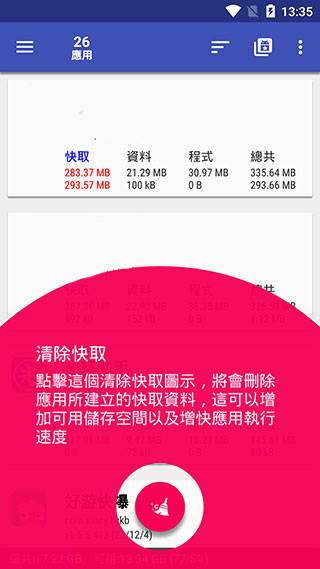 单键清除所有应用所产生的快取档案