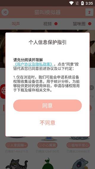 1、下载安装好本站提供的猫叫模拟器软件,第一次使用需要同意用户协议;