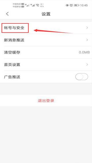 3、接着在设置中点击账号与安全。