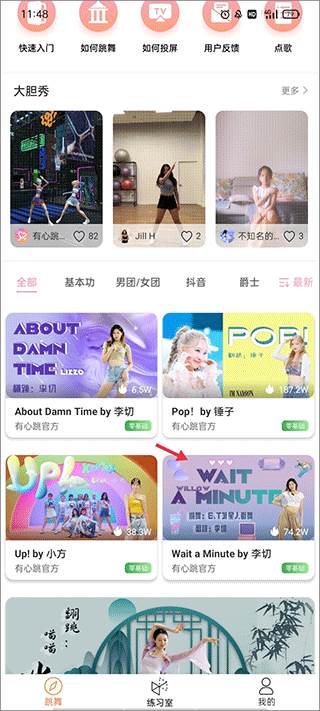 1、提供零基础入门的舞蹈教学,包括男女团舞、街舞、爵士舞、抖音流行舞等。
