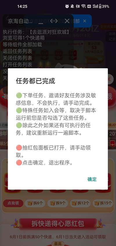3、支持京东拆快递任务,淘宝预售任务和淘宝主会场任务。