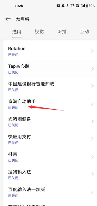 2、在无障碍服务功能栏里面找到《京淘自动助手》的无障碍开启。