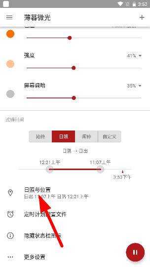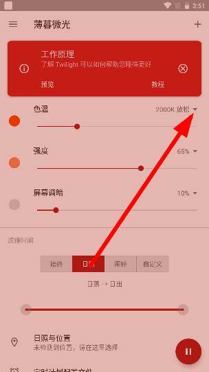 其实针对这一些,还是有一定地防护措施,例如买蓝光贴膜,安装屏幕调节软件,而薄暮微光专业版属于后者。它会根据您的所在定位,进行昼夜检测,推出相关的屏幕亮度方案。