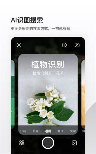 识图辨物:自动扫描识别垃圾分类、宠物狗、植物等,点击搜索框相机即可体验。