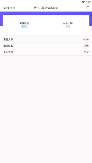 3、查询成功,图中可以看到同名人数和男女占比等信息,十分好用