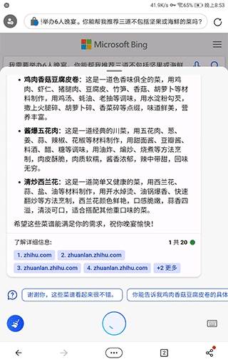 你可以给它提出个人要求,如你的饮食偏好、预算限制、地点或时间要求,而「新必应」将根据你的需求和兴趣调整自己的答案。